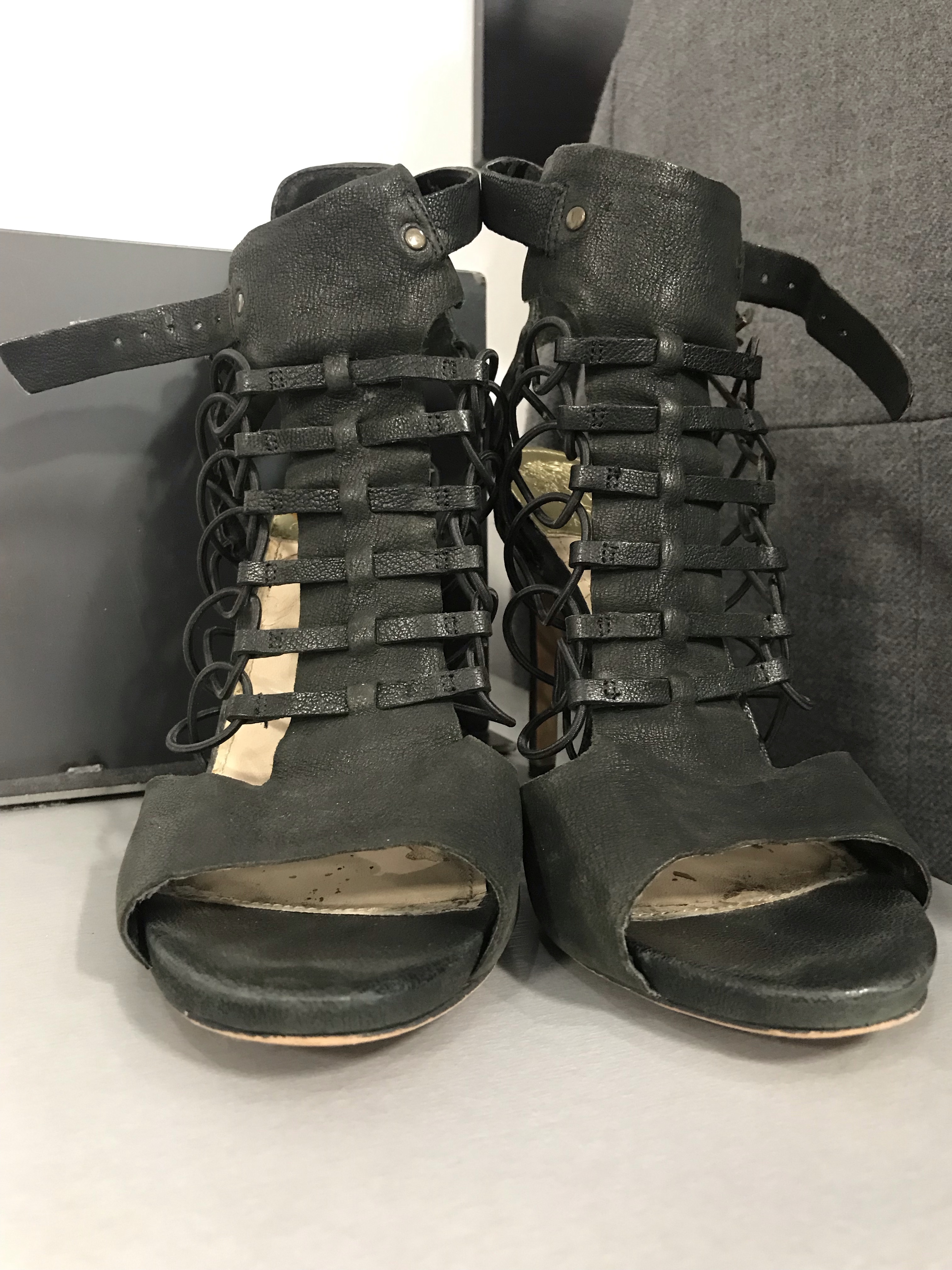 Vince Comuto very worn Strappy leather spike stiletto high heel.
