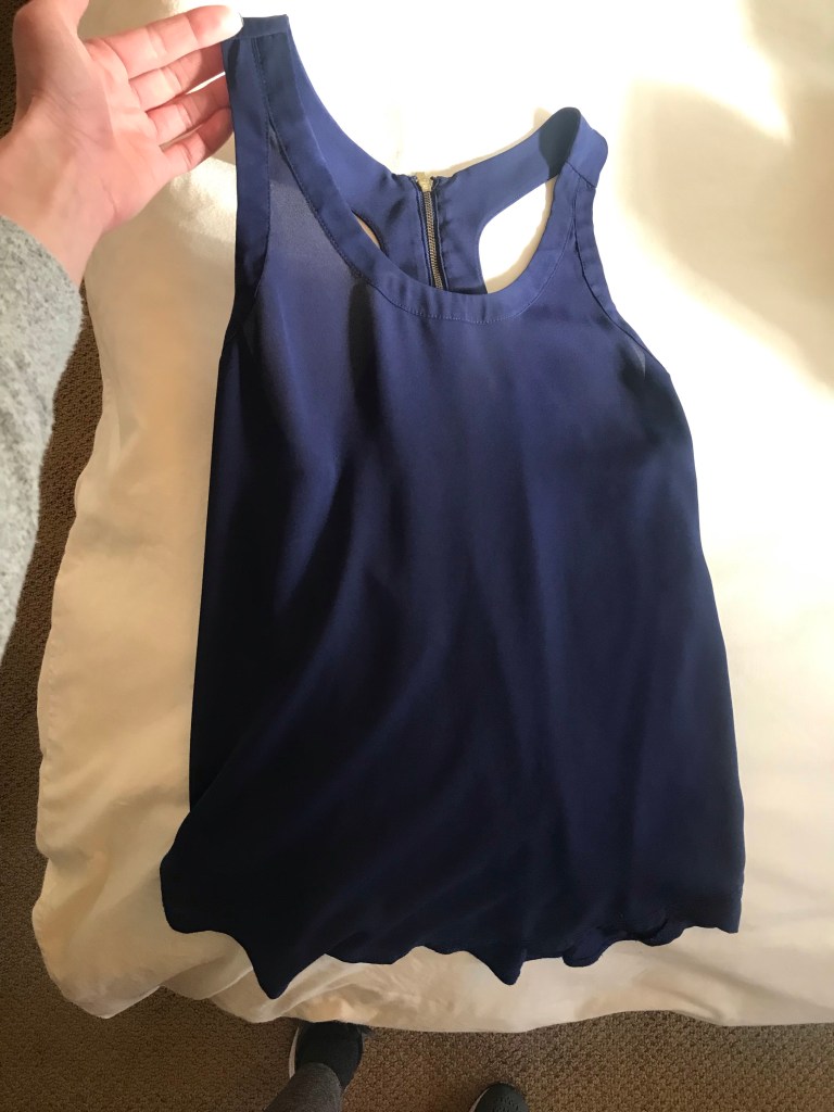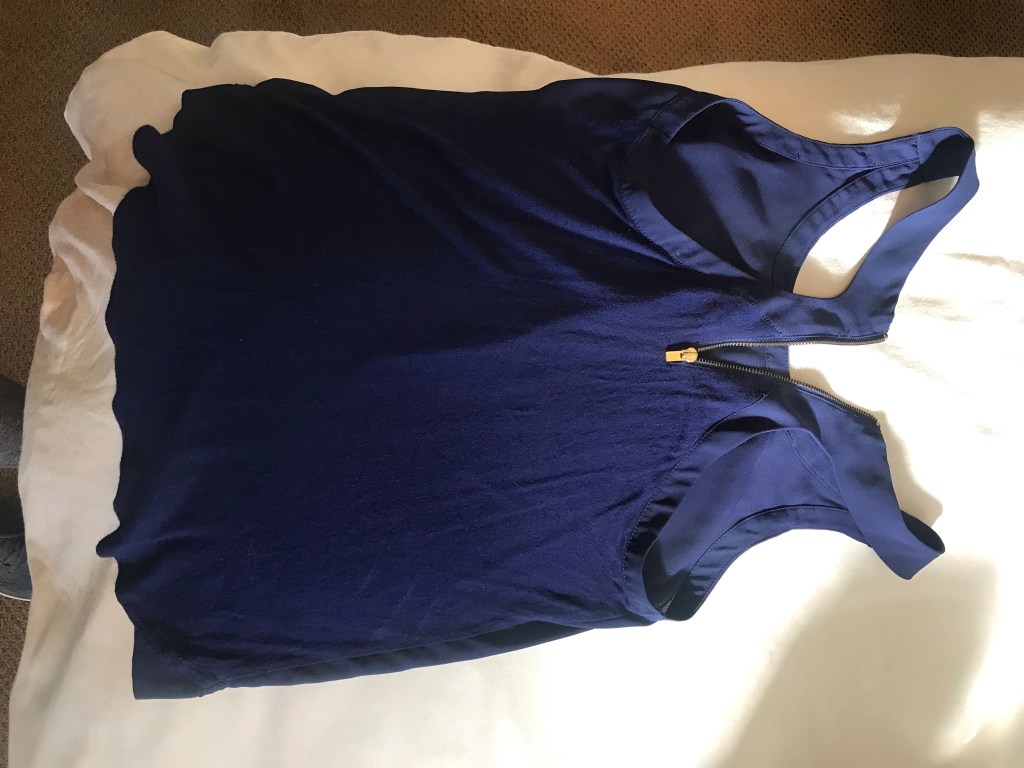 ACTIVE NOW: EXPRESS Tank Top Blouse Sheer Zip Back Women’s NAVY BLUE Sleeveless : XS X Small (on my eBay account only $10 : Mizzkittenkitten)