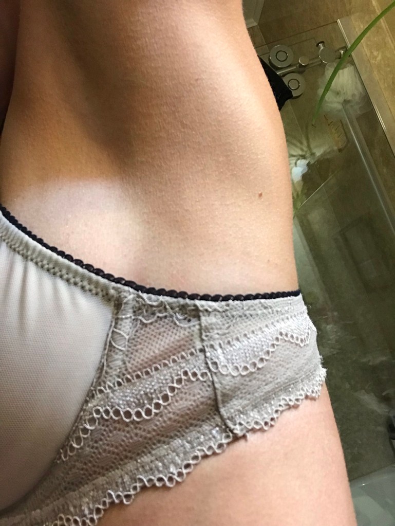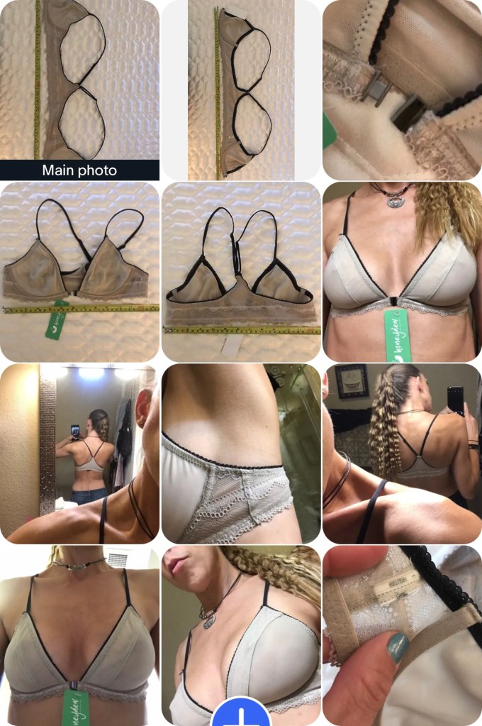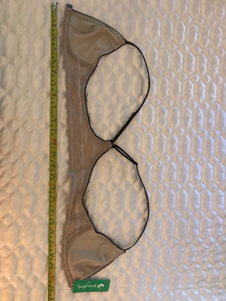 Tiny little Tan brassiere (available NOW on my eBay store: search user: Mizzkittenkitten) Womanโs Front Clasp Bra W Underwire Tan WithBlack Lace Trim Sz: About 32B To 34B Womanโs Front Clasp Bra W Underwire Tan WithBlack Lace Trim Sz: About 32B To 34B
