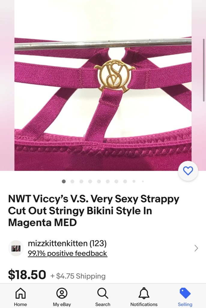 New with tags VS SEXY STRAPPY CUT OUT STRINGY BIKINI STYLE IN MAGENTA AVAILABLE NOW ON MY MIZZKITTENKITTEN EBAY PAGE! Taking this thong on vacation Another shot for fun I accept cash app venmo and PayPal these r up on eBay rn 🙂
