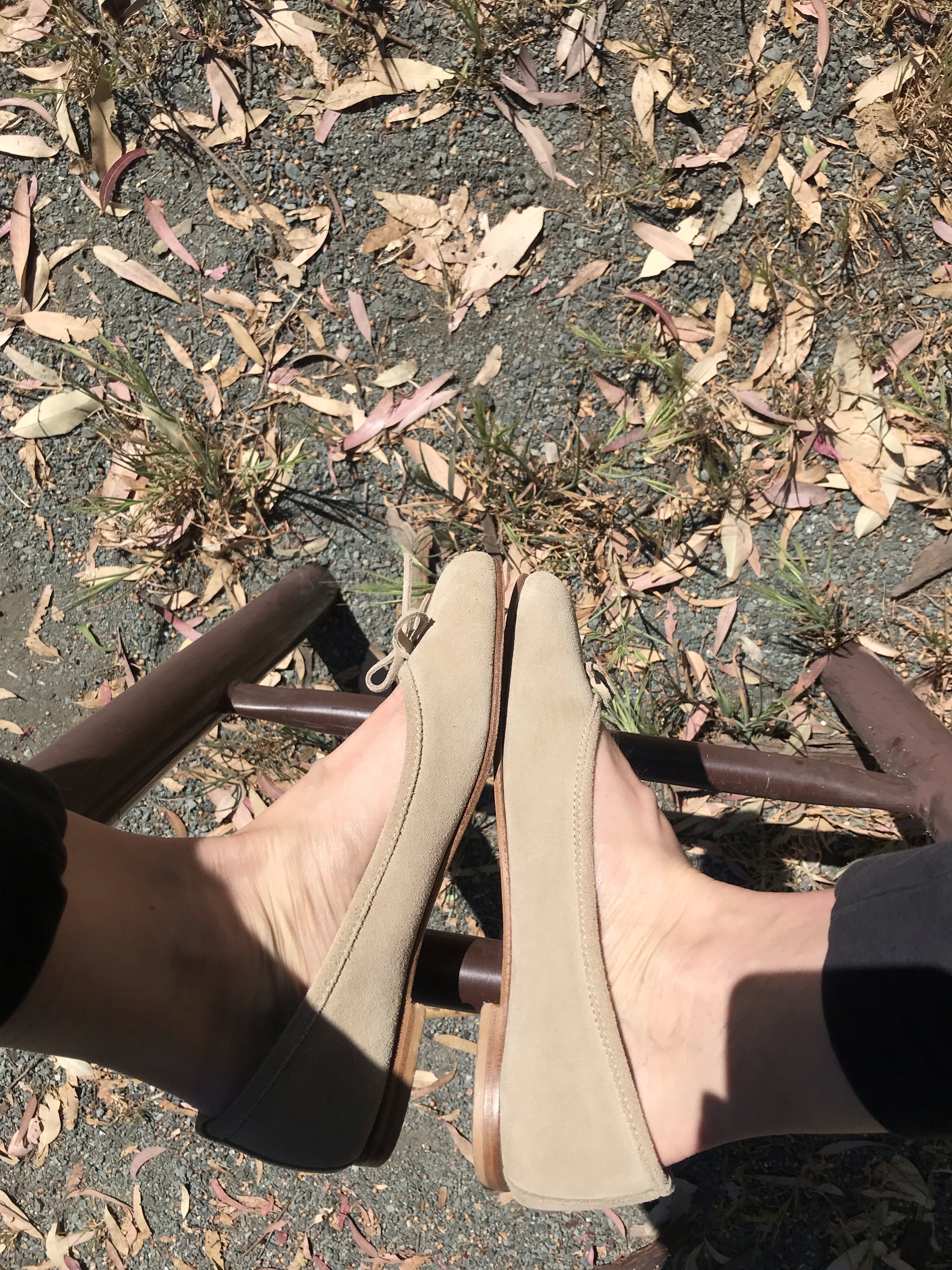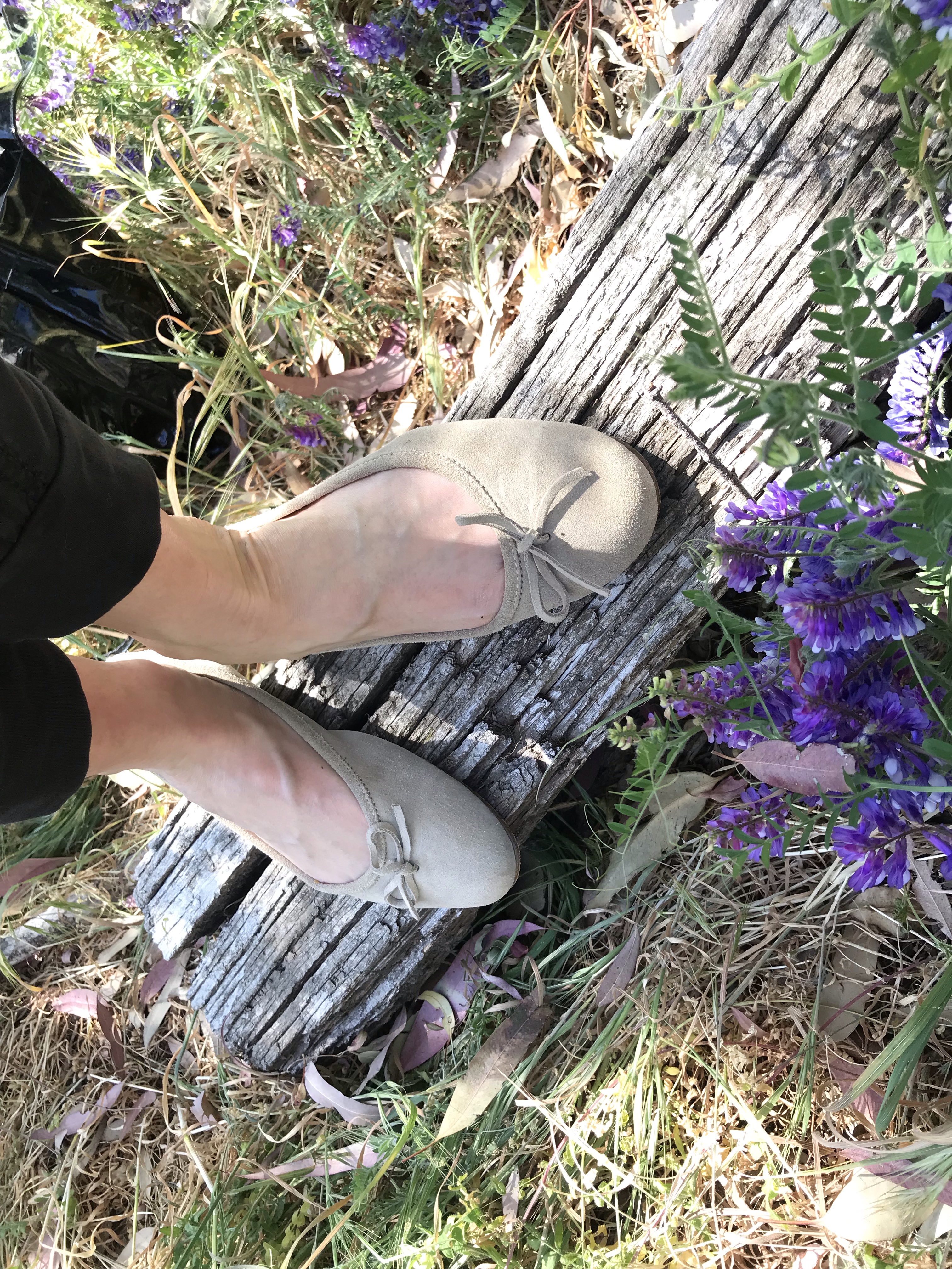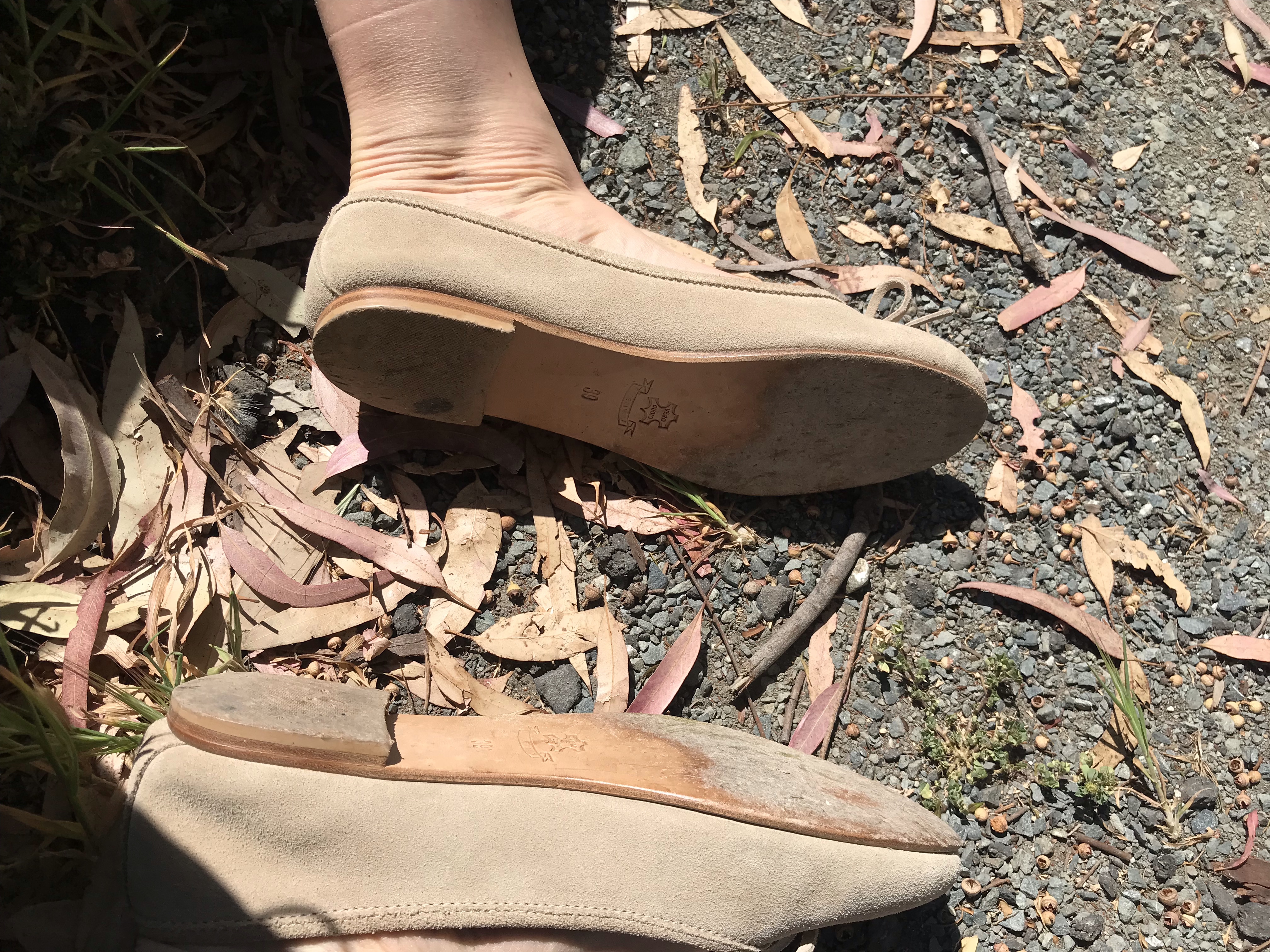 SOLD Leather insole used tan suede flats (s0ld On eBay No joke!) Available now on eBay. Search domain name is “ MIZZKITTENKITTEN “