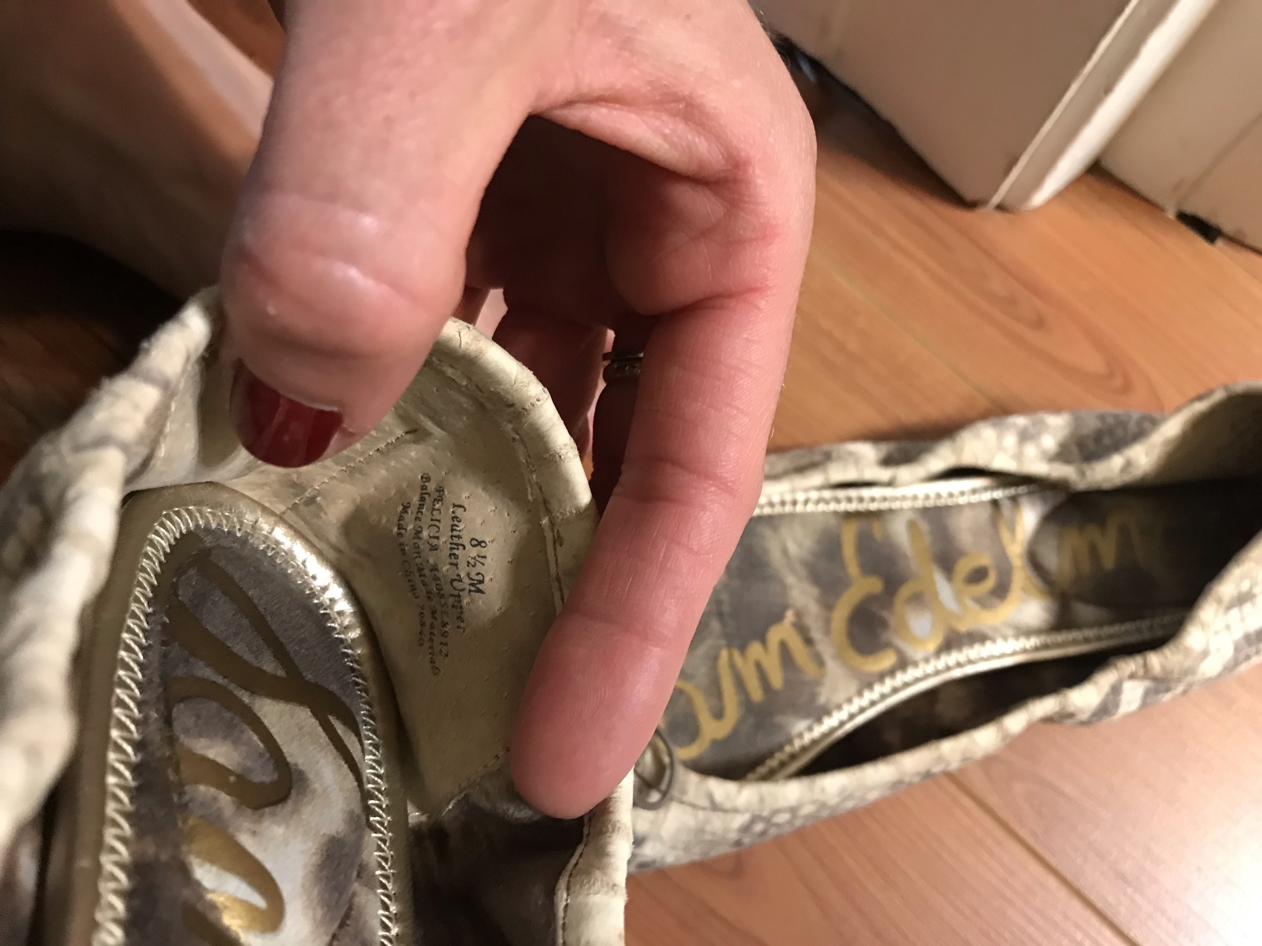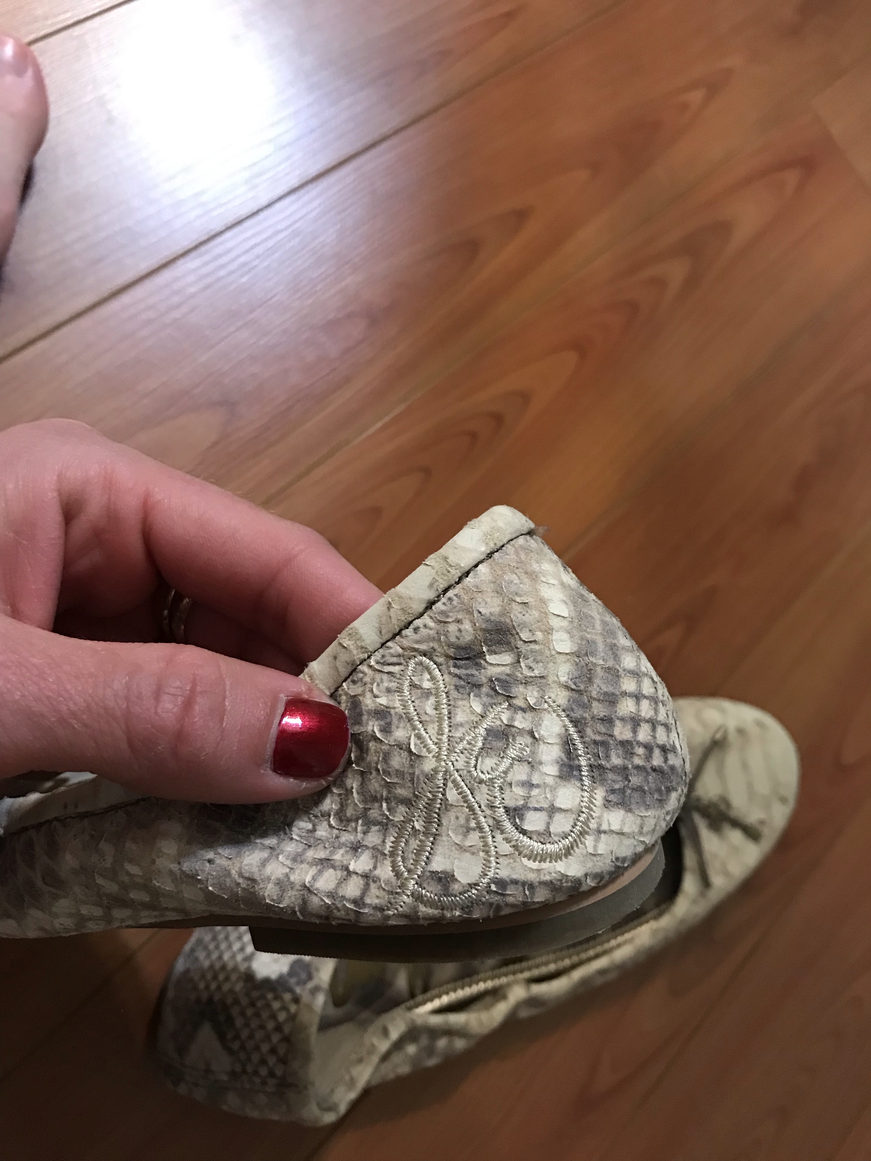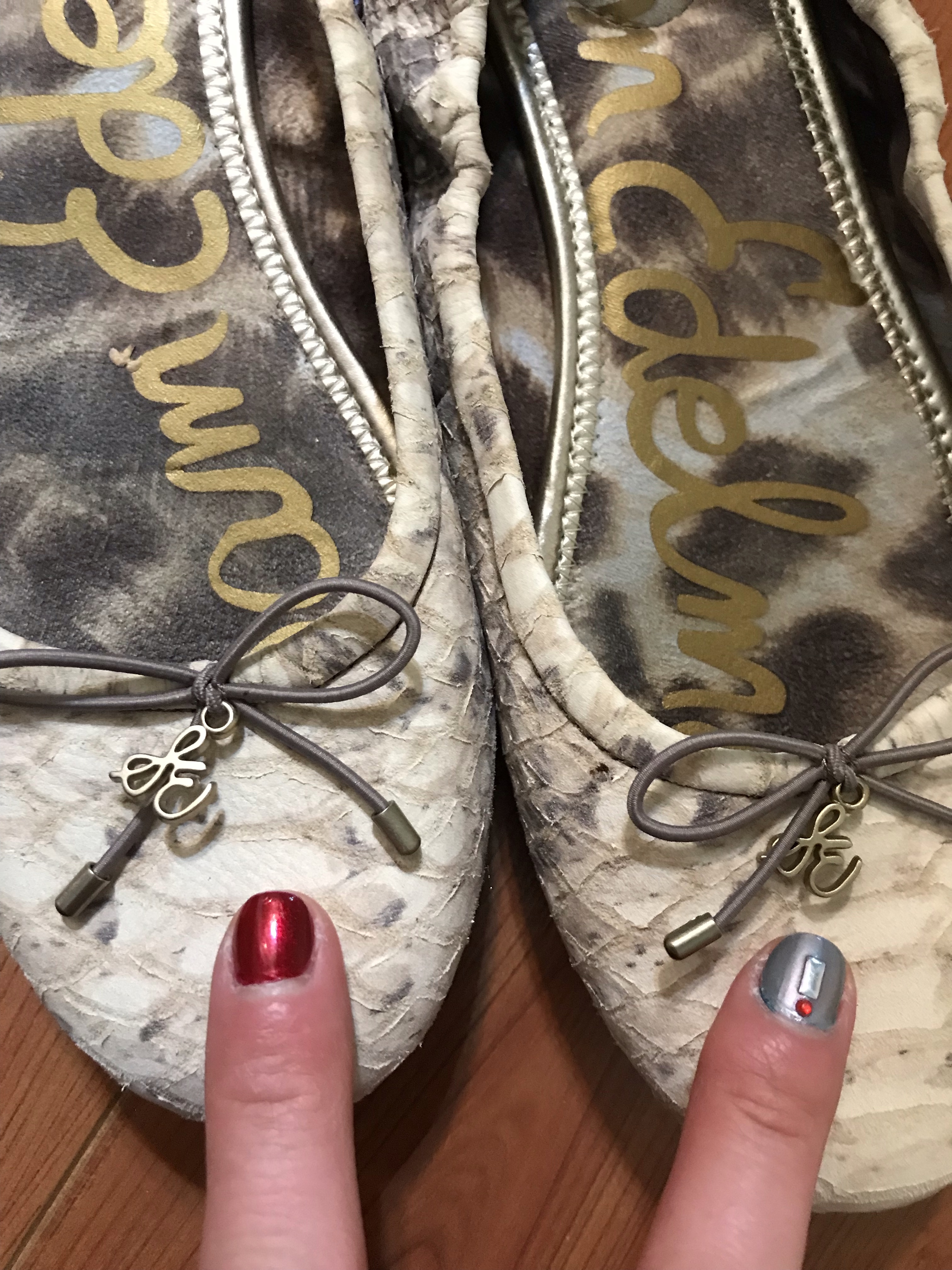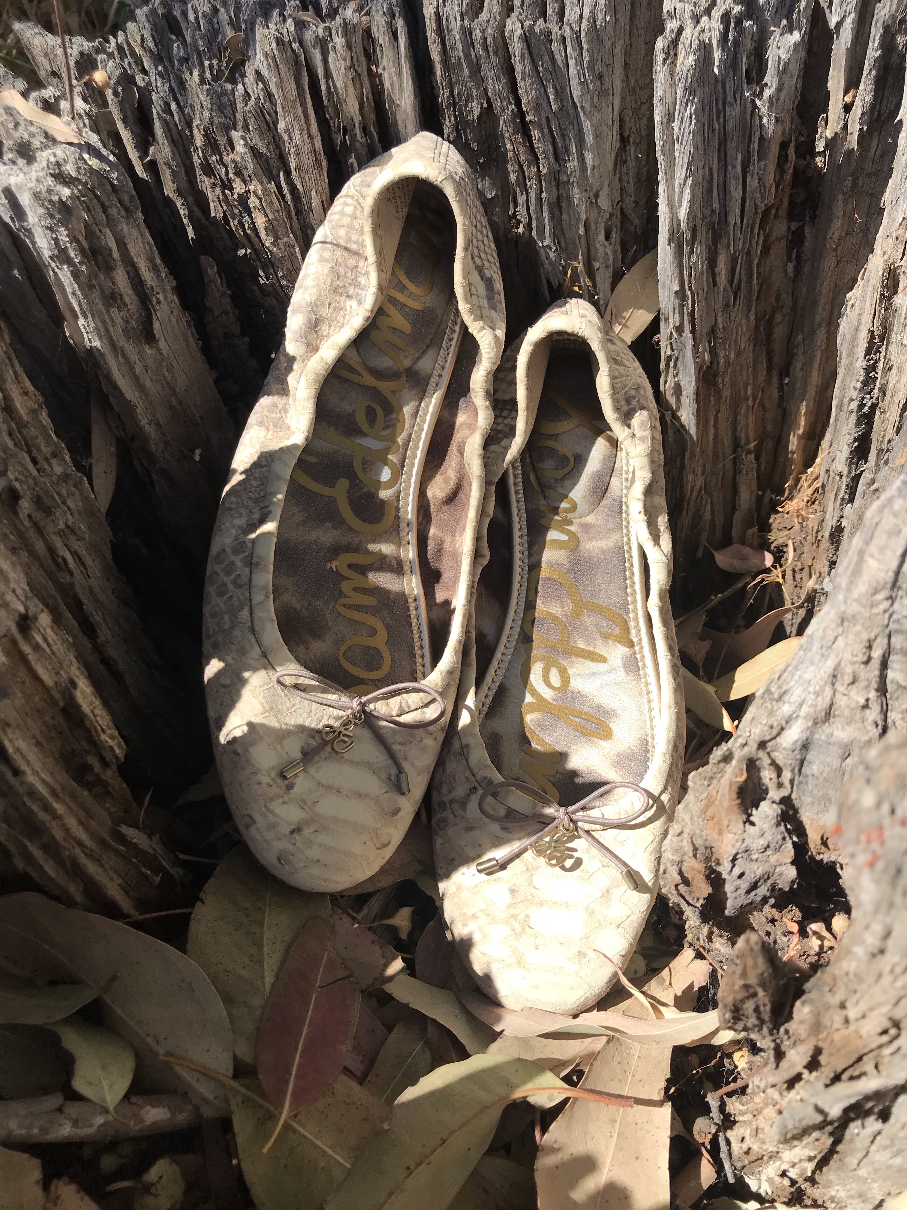 SOLD! Sam Edelman shoes women’s SZ 8.5 leather snakeskin print Felicia flats Fun flats Lovely flats Kitty sniff love Smell me