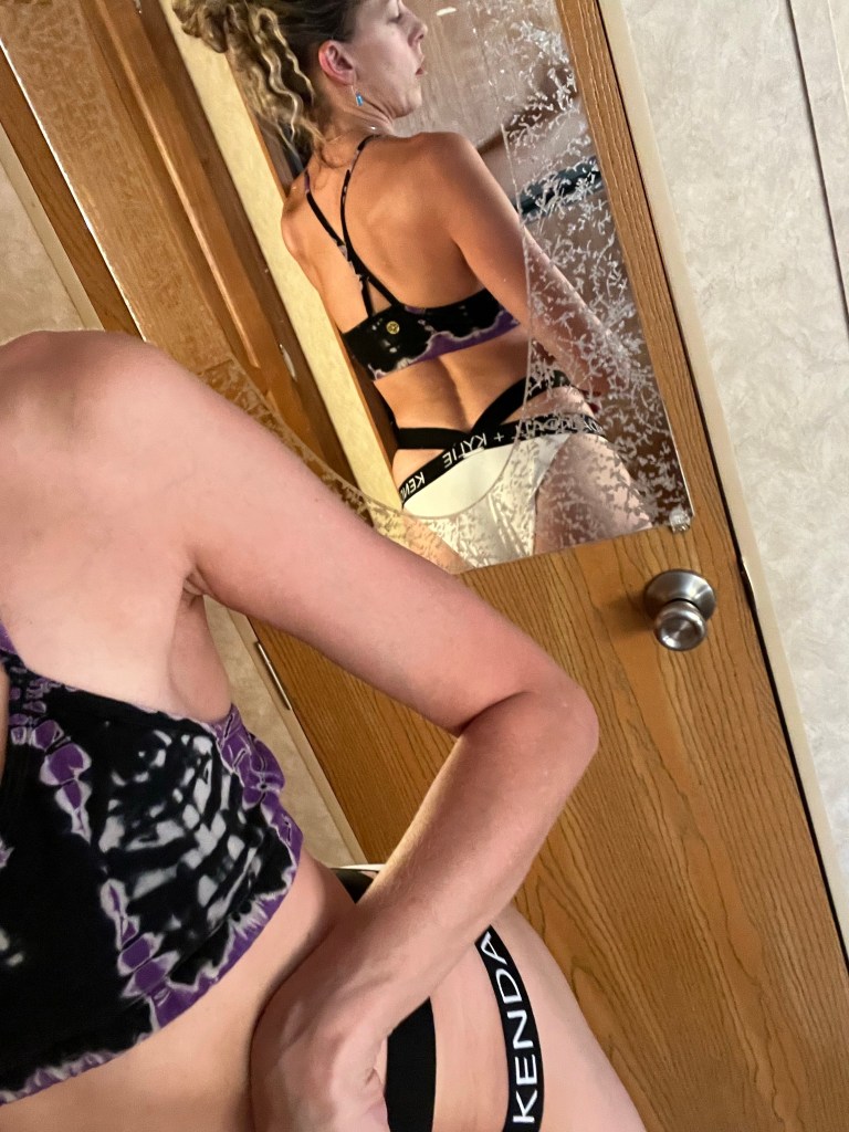 Going to have to do a little work b4 I ship them. Don’t u wish u could watch?About to take very special care of these pink brand cotton panties 😉I love the the way the blinds hit my behind 😍