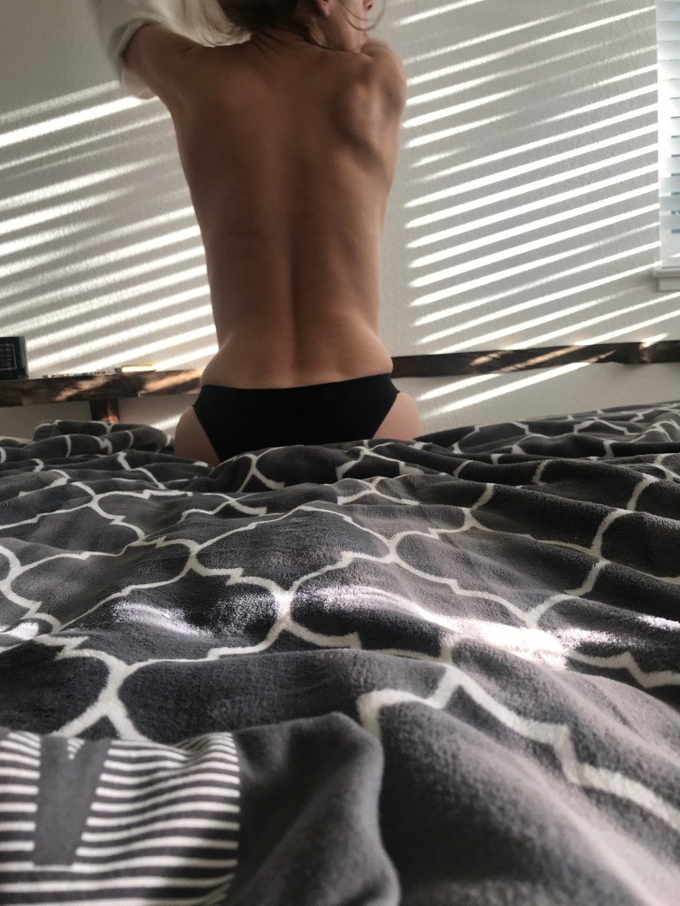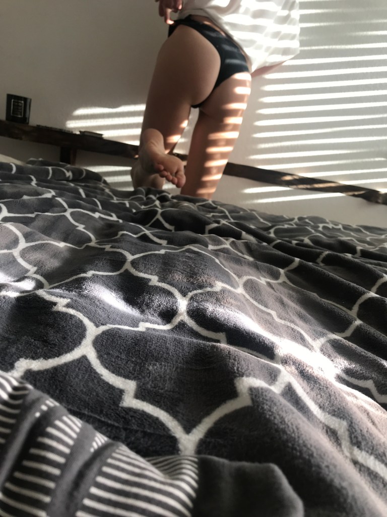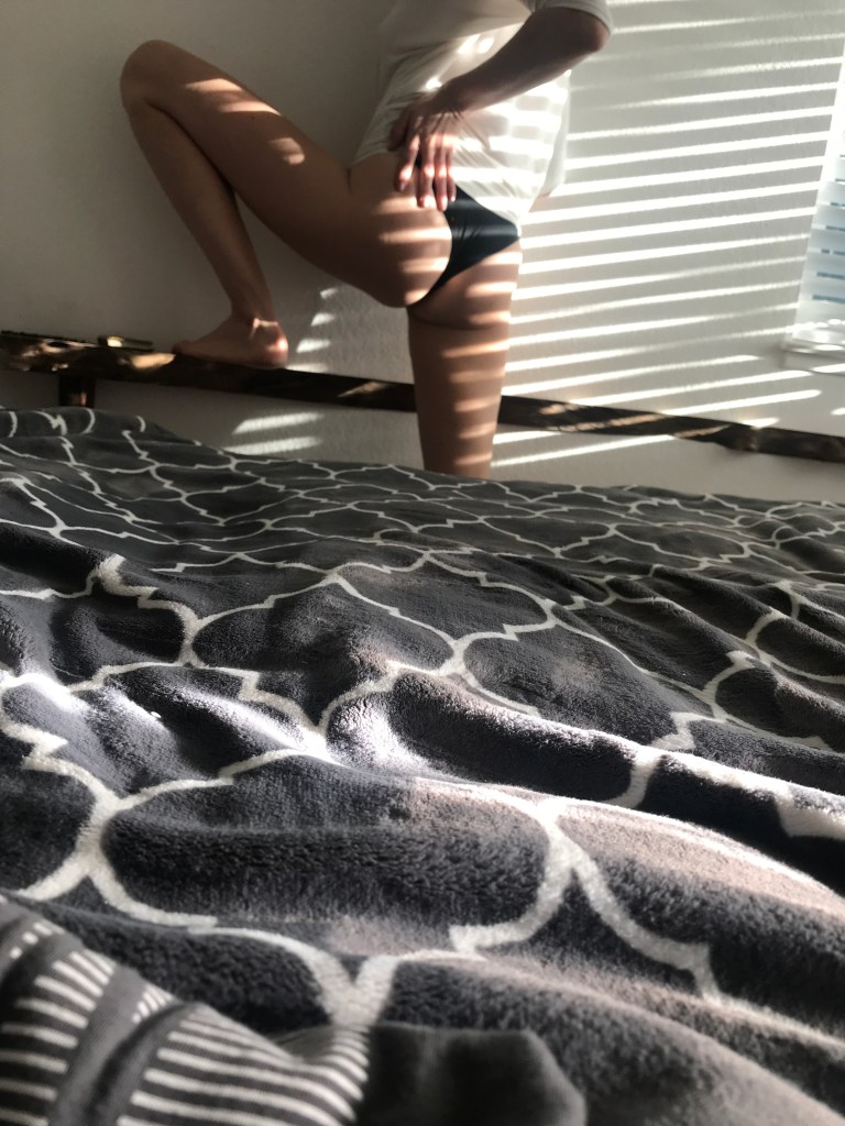 Going to have to do a little work b4 I ship them. Don’t u wish u could watch?About to take very special care of these pink brand cotton panties 😉I love the the way the blinds hit my behind 😍