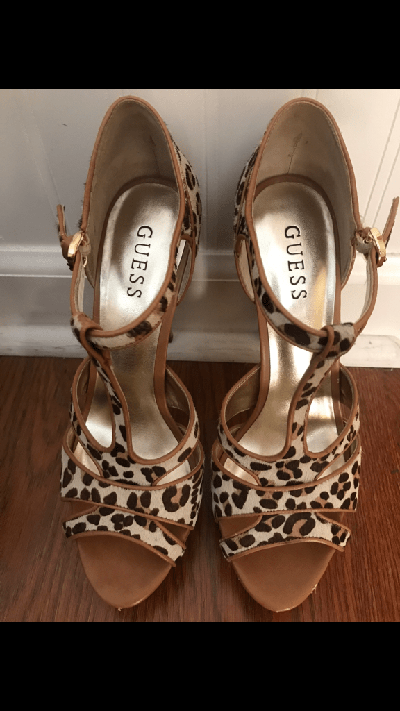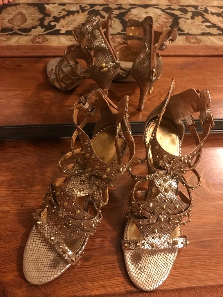 S0LD! GUESS GOLD SPIKED HIGH HEELS STRAP SANDALS Golden Metallic Zip Up PUMPS SZ: 10M (for more search my eBay page!) search eBay user Mizzkittenkitten