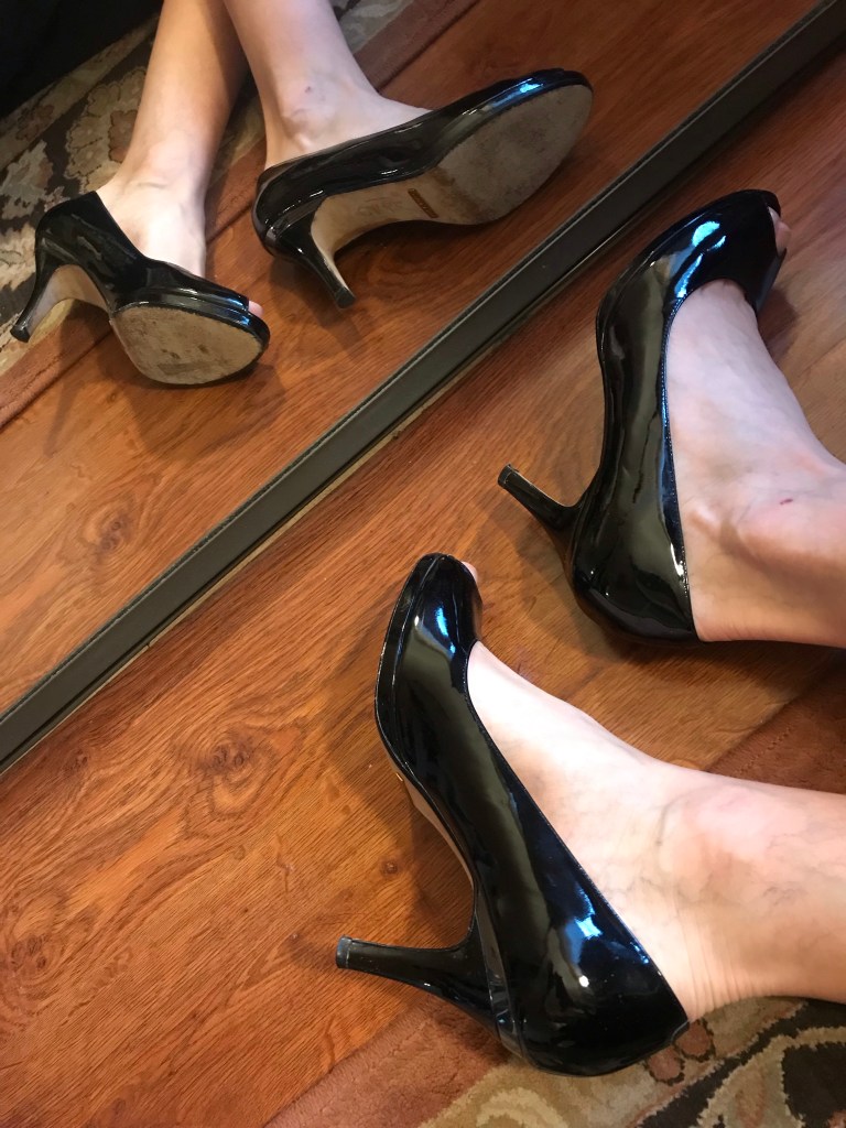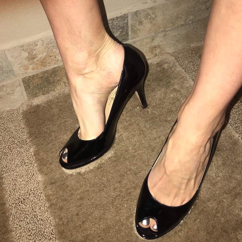 S0LD! COLE HANN COLLECTION BLACK Patent Leather Peep Toe PADDED Pumps HEELS SIZE 8 1/2 (just sold on eBay) search user “Mizzkittenkitten” for more sexy footwear: